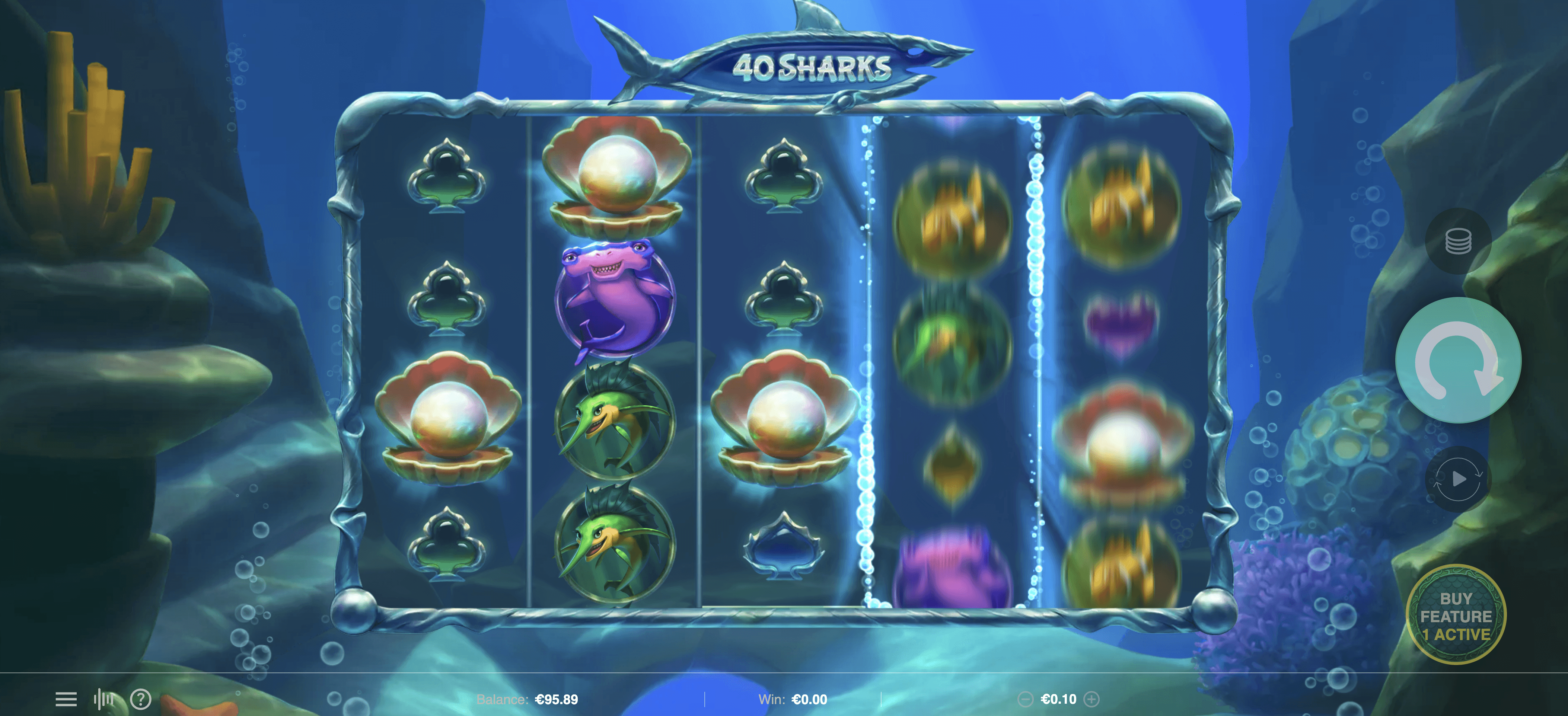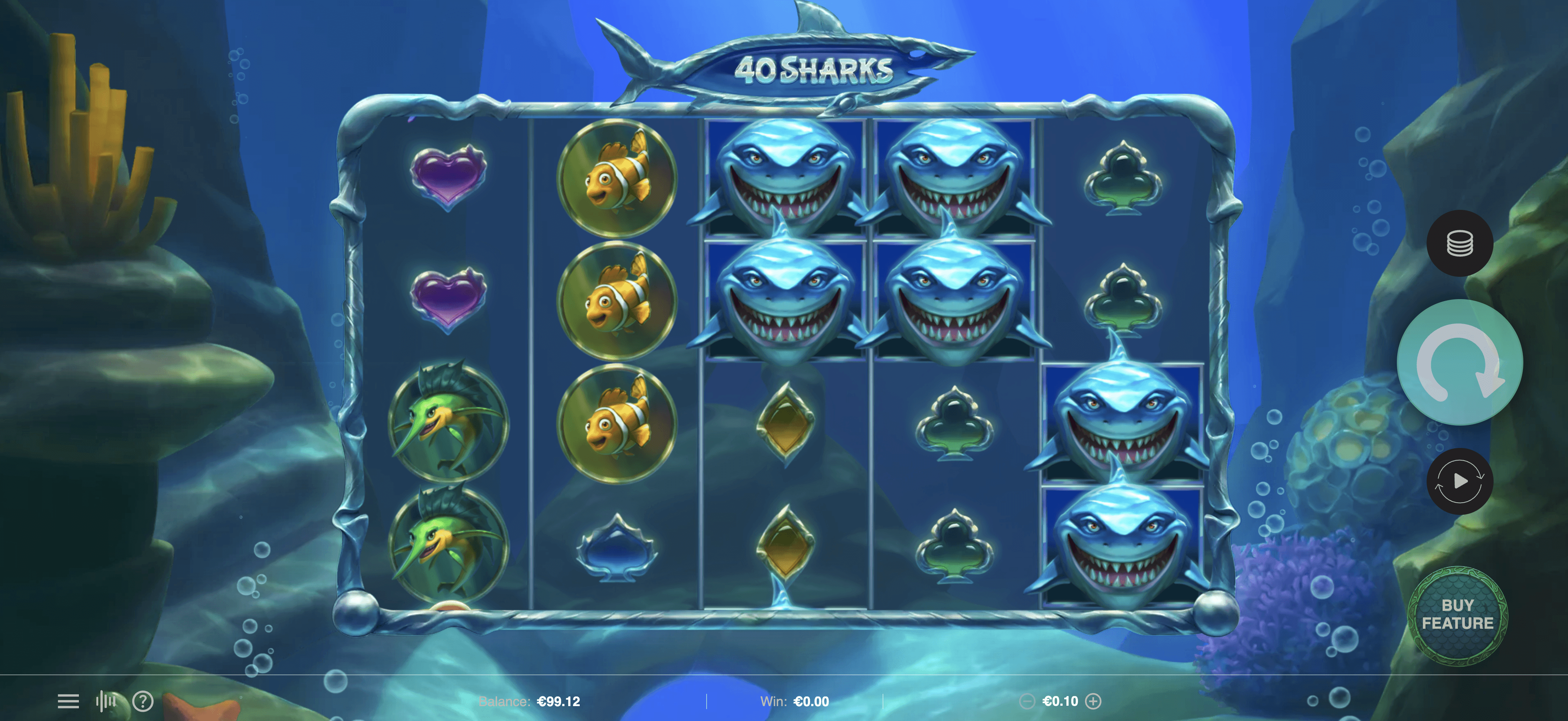 40 Sharks is a 5-reel, 4-row video slot with 40 fixed paylines and action-packed Free Games. The WILD symbol substitutes for all symbols except the Shell Scatter, which triggers up to 50 Free Games. During the bonus, the Shark joins the reels as an additional Wild, boosting winning chances. With retriggers available and a sea of paylines, this game delivers waves of excitement.