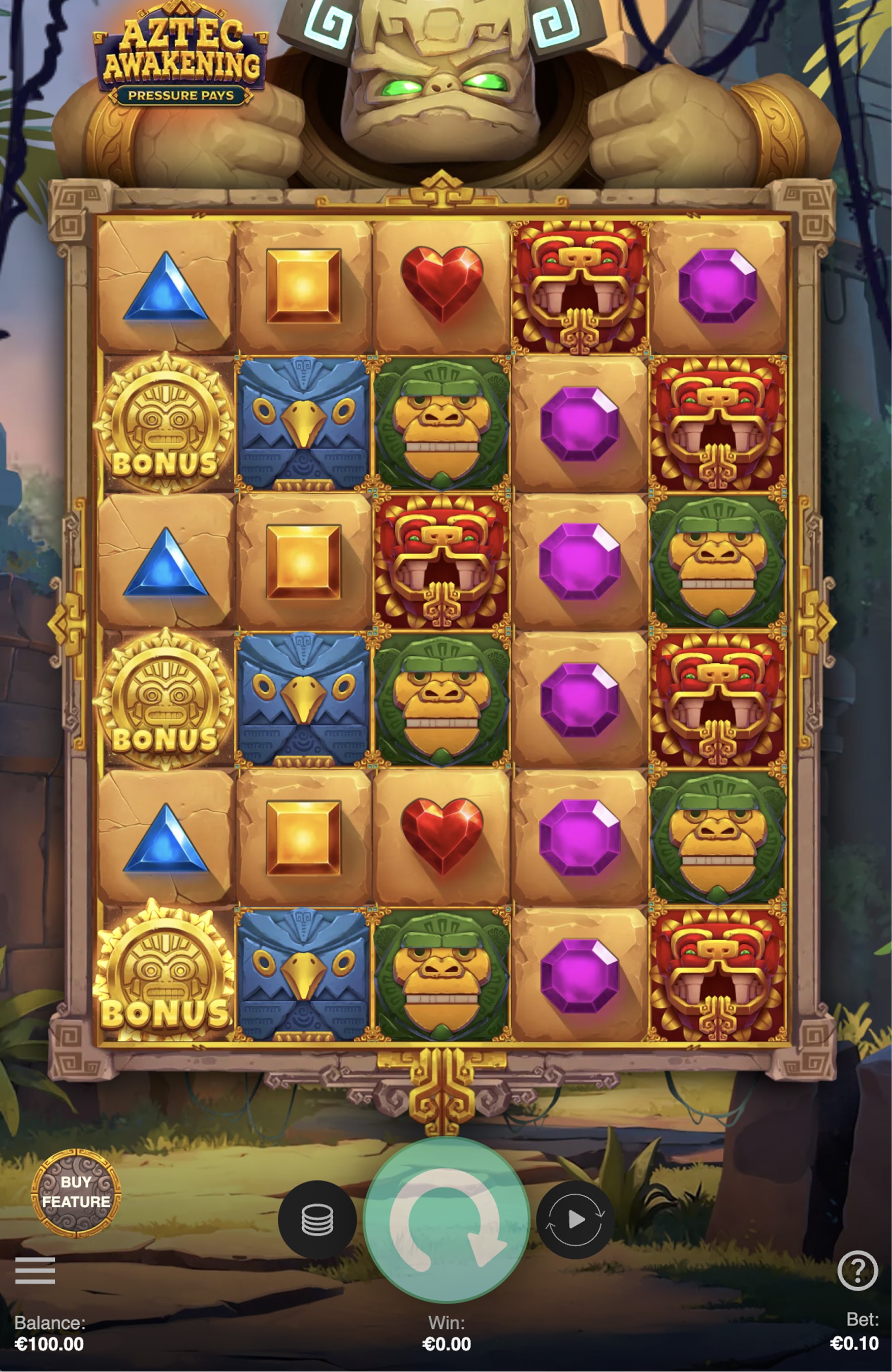 A 5×6 Aztec slot with 50 fixed paylines and cascading wins, delivering medium–high volatility action. Its Wild Pressure Mechanic drops a 2×2 Weighted Wild onto low symbols, breaking them and adding x2 to all adjacent symbols with each impact. 3+ Bonus Symbols trigger the Temple Bonus, where all multipliers become sticky. Gold Wilds leave x5 when they win, while other Gold Symbols leave x2 on first hit and add +x1 to existing multipliers. Weighted Wilds can still appear during the bonus, letting multipliers stack for explosive Aztec wins.