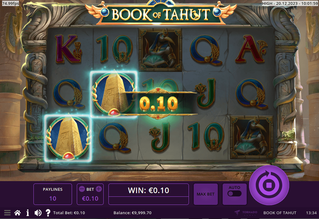 Book of Tahut is a classic 5x3 video slot with 10 fixed paylines and a timeless book-style mechanic. The Book symbol acts as both Wild and Scatter, triggering 10 Free Spins when 3 or more appear. During Free Spins, a Special Expanding Symbol is randomly selected to increase win potential. Spins can be retriggered, and expanded symbols pay across all reels, offering thrilling rewards with each round.